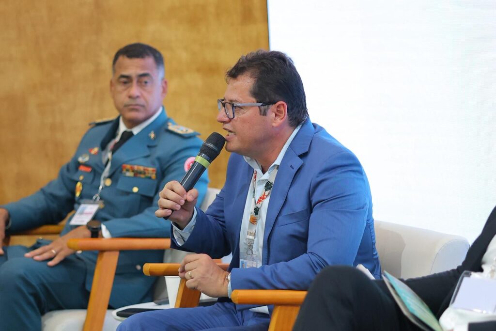 O governador Wilson Lima, juntamente com o secretário da Sedurb e da UGPE, Marcellus Campêlo, participou, nesta terça-feira (11/11), do painel “Políticas Públicas de Adaptação às Mudanças Climáticas na Amazônia: moradia e saneamento como base para comunidades resilientes”, no Pavilhão Brasil, na Blue Zone.