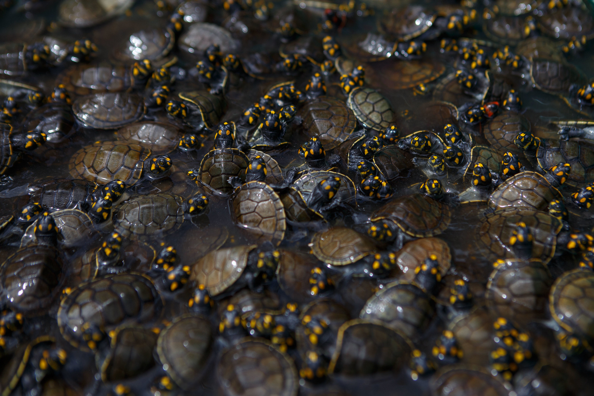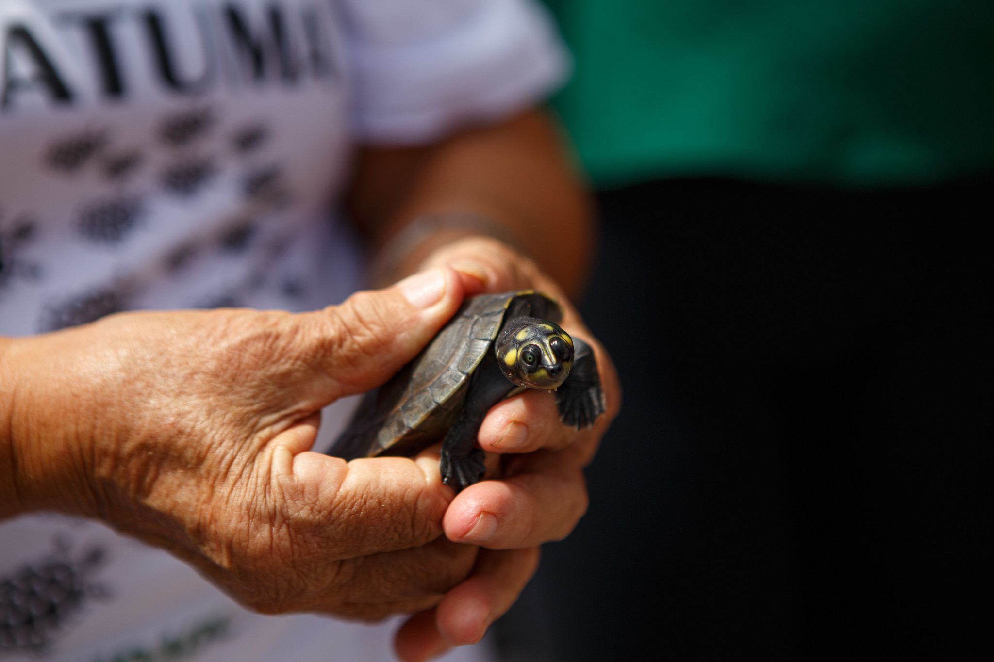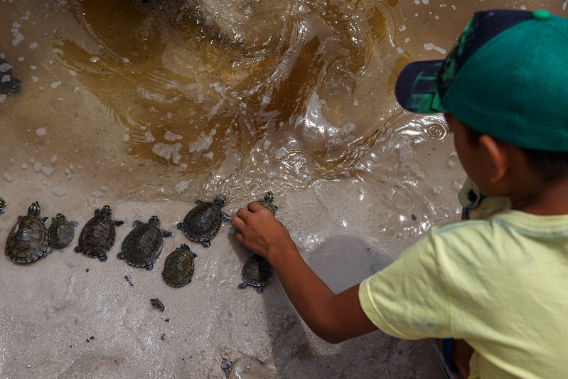Após o nascimento, os filhotes são colocados em tanques, onde permanecem por mais 60 dias até atingirem um tamanho ideal para serem soltos na natureza em segurança. A soltura é um momento de festa nas UC, reunindo comunitários de todas as idades.